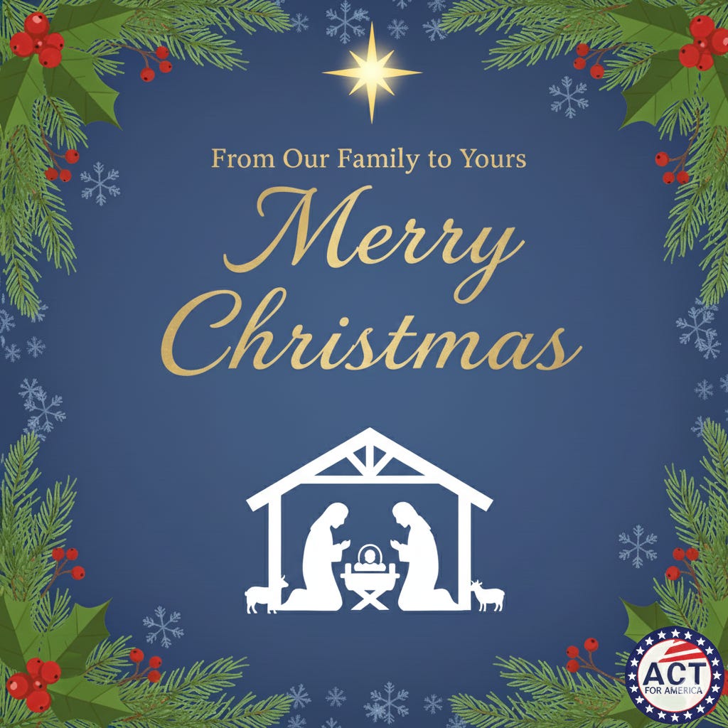 As the clock ticks down on this historic year, my heart is overflowing with gratitude for you—our fierce, loyal warriors at ACT for America. Because of your prayers, your generosity, and your unbreakable commitment, we are now at 72% of our $238,000 year-end goal. We could never have come this far without you. You are the reason we’ve had so much success this year. From the bottom of my heart—thank you.With your help, 2026 will bring even greater success. That means shining a b...